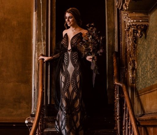 Halten Sie sich fest – dunkle Brautkleider sind jetzt voraus! Die heutige Vintage-Hochzeitsinspiration veranschaulicht, dass die perfekte Kombination für eine stimmungsvolle Ehe ein schwarzes Kleid sein kann. Das Arrangement aus Schwarz und Funkeln wird Sie über jedes Detail begeistern.